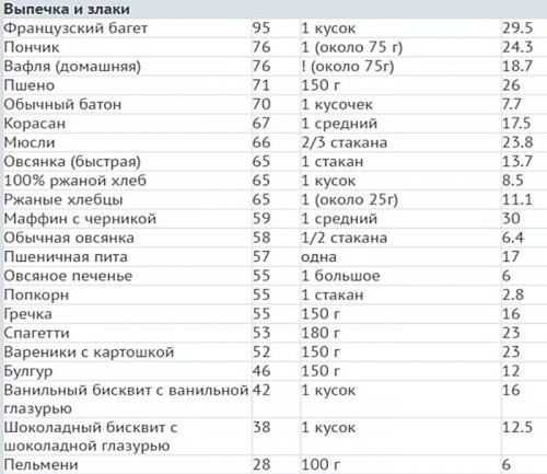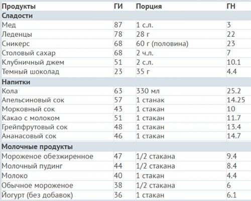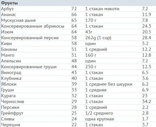 их гликемический индекс