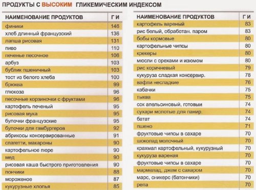 ГИ от 70-ти, низким – до 35-ти.