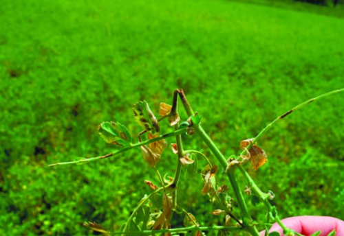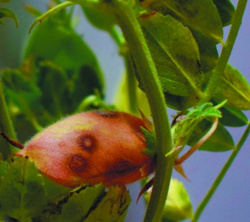 уменьшаются в 2,5–3,0. Распространение болезни в до 9 мм. Болезнь проявляется преимущественно У нута слабая