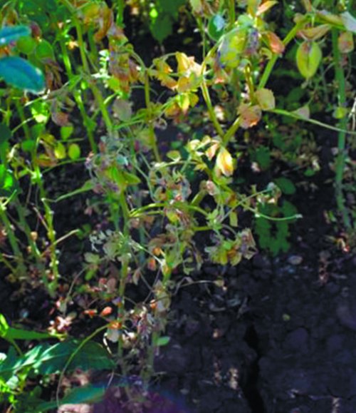 Рис. 2. В центре — делянка нута, пораженная антракнозом | полной гибели (рис. 2). В конкурсном сортоиспытании зафиксировано распространение антракноза в полной гибели остатках растений патоген |