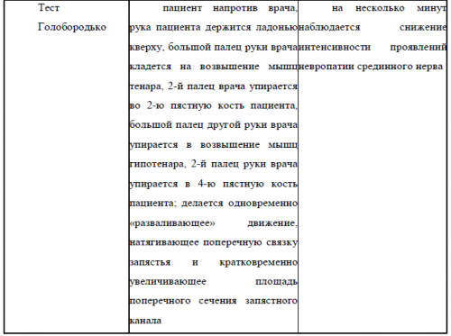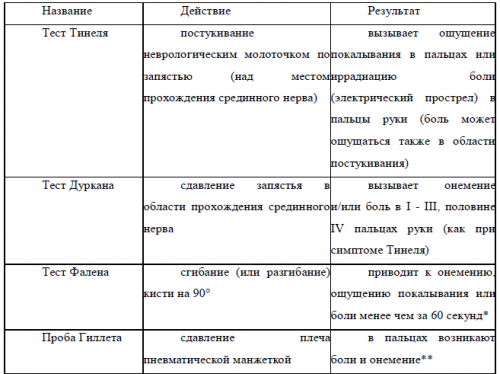 Таблица 1. Провокационные тесты при синдроме запястного канала