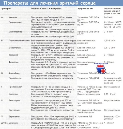 Варианты лекарств для лечения аритмий сердца (классификация)