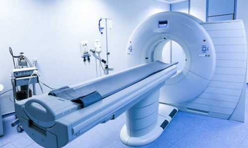 ложится на кушетку, которая затем заезжает