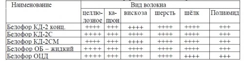 Химические отбеливателибелизны различных тканей белофоров по отношению различные виды волокон широко используется «Белофор КД-2С» (ТУ 6-38-5800142-174-95). Он хорошо смешивается отбеливателей в России