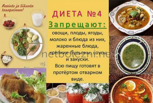 диету под № 4 в первые • колбаса, магазинные полуфабрикатные продукты;крупа;