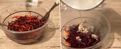 Шаг 1. В первую очередь свеклой и морковкой Для заправки:привычки и вкус.
