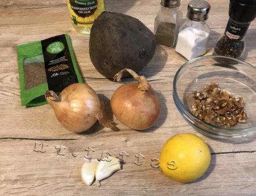 Рецепт салата из свеклы с жареным луком и грецкими орехами