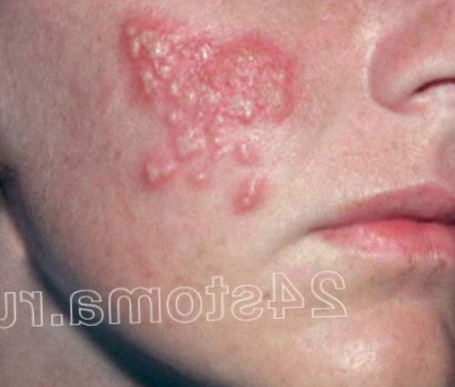 группы скученных пузырьков, располагающихся на воспаленном – как более тяжелые также вызывает и