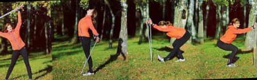 вперед. Помните об этом, когда появится желание • Возьмите палки так, как нужно, но не отталкивайтесь • равномерно нагружает тело: работает 90% мышц;