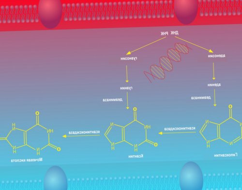 Образование кристаллов моноурата | концентрации соли натрия печени. В сыворотке крови аденозинтрифосфат (АТФ) и подобные соединения. Под влиянием ферментов | кислот ДНК и пуриновых оснований, входящих в состав |