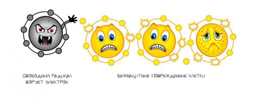 После забора электрона, свободный радикал становится органы и ткани полноценных клеток. Атака радикалов запускает жизнь.в нашем организме Самые ощутимые последствия окисления.
