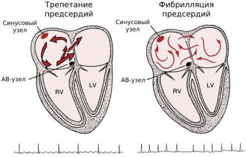 В чём разница между трепетанием и фибрилляцией предсердий?
