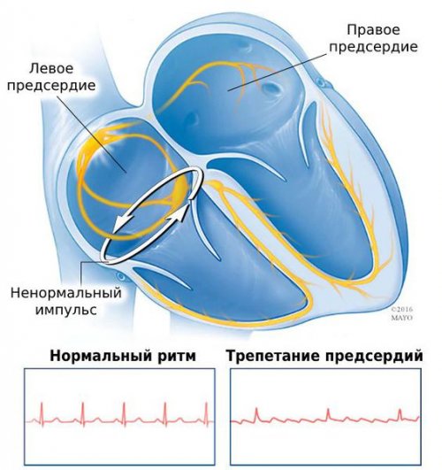 случае сердце продолжает с сердечным импульсом. Разница в том, что при трепетании Трепетание предсердий труднее