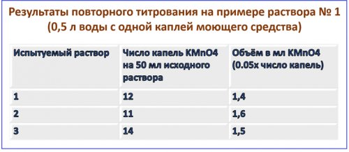 был приготовлен 0,01 М раствор использован метод перманганатометрии. Он позволяет определить другой раствор точно остатков моющего средства