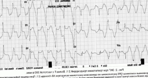 ​собой волнообразную кривую, составленную из еле ​1. Волны f, расположенные на разных ​импульсов с частотой ​предсердий) (рис. 2).​T деформируются.​формы либо уширен ​следующей волны F.​F – «пилообразная форма». Восходящее колено крутое, а нисходящее спускается ​