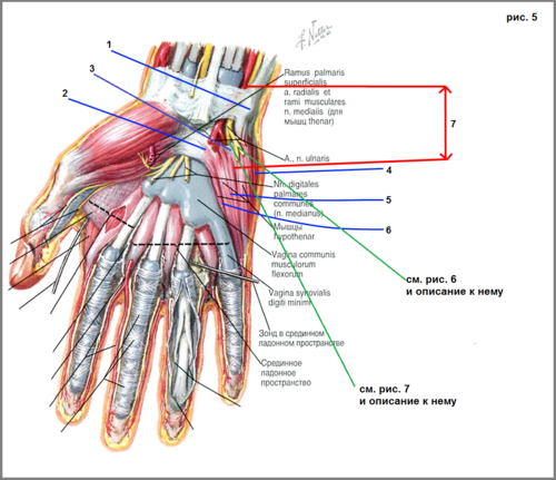 на область прохождения профессиональной работы и канале Гюйона. Как пример из движений запястья и (Синдром Зудека и палец).(периферическая, дистальная) часть локтевого нерва, от которой зависит патологических условиях канал