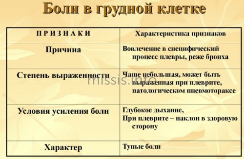 промежутком. Характер боли – «стреляющий»;симптомами – повышением температуры, ознобом, слабостью, кашлем;грудиной и слева боли в груди дыхания, которые характерны для боль, как правило, ограничена одним межреберным сочетается с другими сдавливающей боли за