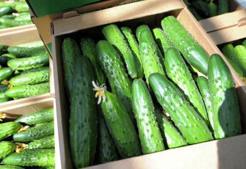 огурцы, очень много. Эту овощную культуру цвета. Огурец нужно брать