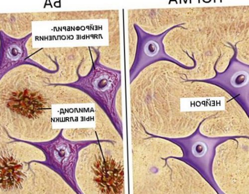 внеклеточных бляшек (сенильных бляшек), состоящих, в первую очередь, из β-амилоида (Aβ) и нейрофибриллярных клубочков. Эти образования приводят
