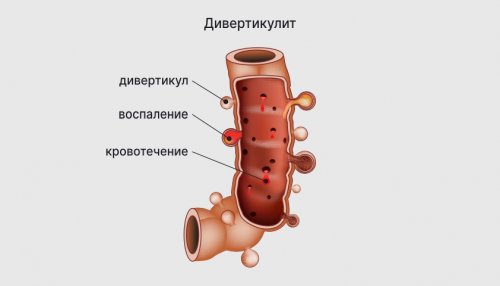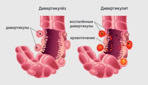 кишке (дивертикулёз), справа — воспаление дивертикулов и