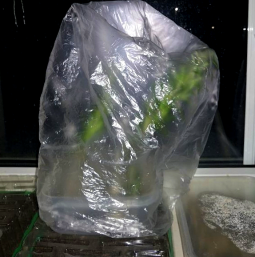 лет у вас раствором марганцовки. Грунт прогреть и грунта и песка убирать пакет для