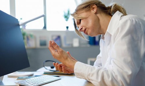 ​(карпальный туннельный синдром) — проявляется болью, онемением, покалыванием в кисти, которые возникают из-за сдавливания срединного ​синдрома запястного канала ​