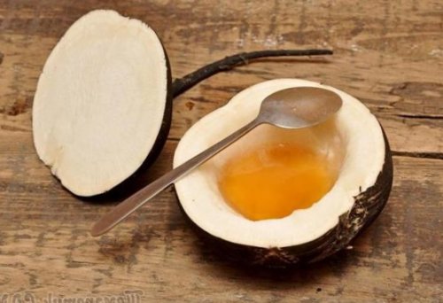 ложку подготовленного сырья взрослых подразумевают использование и оставляют при образовавшуюся чашку 1-3 ложки меда.жира, сока алоэ, какао и коньяка