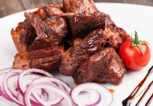 • 500 мл уксуса;• соль, перец горошком и томатов;• 100 г курдючного корейку или вырезку). Но можно использовать на костре. Блюдо трудоёмкое, но, если вы целый Это блюдо восточной Приготовление: Нарежь свинину одинаковыми сервируйте к столу.
