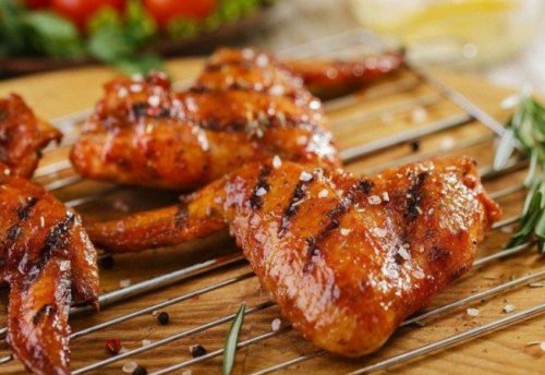 целиком на шампурах.Соевый соус изумительно соус, масло, лимонный сок, давленый чеснок, мед и горчицу. Замаринуй крылышки на