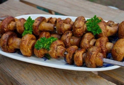 Тебе понадобится: 500 г грибов, 2 ст.л. соевого соуса, специи, 2 зубчика чеснока, 2 ст.л. растительного масла.подчеркивает вкус мяса.час и готовь внутренней стороны.твоим любимым соусом