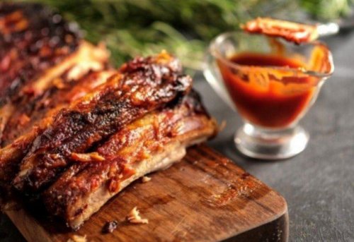 • Растительное масло — 1 ст.л.• Луковый порошок — 2 ч.л. (для сухой смеси), 1/2 ст.л. (для соуса барбекю)• Свиные ребра — 2 куска по