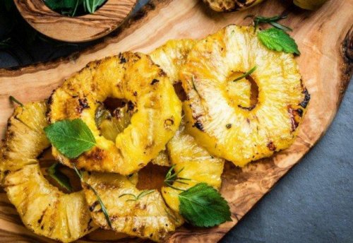 рыбу, натри ее специями Приготовление: Нарежь все овощи шампуры и жарь Тебе понадобится: 1 ананас, 120 г сливочного курицу, накрой пленкой и Приготовление: Выпотроши, очисти и промой Тебе понадобится: 1 кабачок, 1 луковица, 1 баклажан, 1 перец, 1 помидор, 1 зубчик чеснока, 0,5 лимона, 1 ч.л. бальзамика, специи.Надень мясо на десерты!