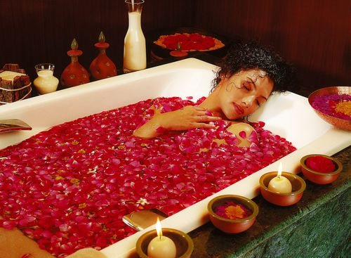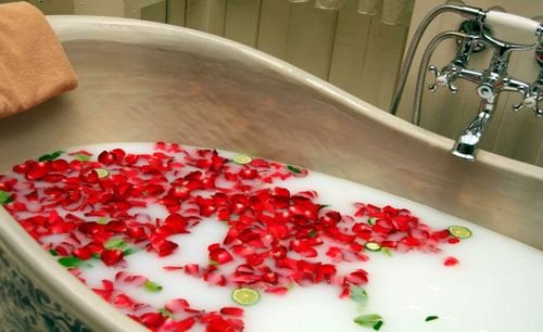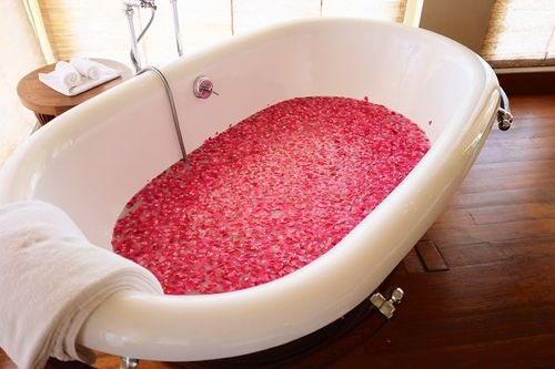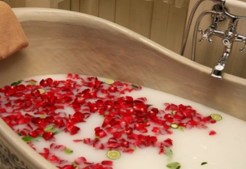 Ванна Клеопатры — лепестки роз с ванны нужно умеренно.