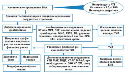 консультация кардиолога при артериальной гипертензии, нарушениях сердечного ритма, при подозрении на острый коронарный синдром, а также для разработки программы вторичной индивидуальной профилактики; УЗИ сердца показано пациентам с наличием кардиальной патологии в анамнезе, выявленной при объективном исследовании или по данным ЭКГ, при подозрении на кардиоэмболический генез ТИА;