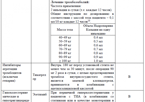 • У пациентов с некардиоэмболической ТИА антитромбоцитарная терапия предпочительнее антикоагулятной для снижения риска повторного ишемического инсульта и других сердечно-сосудистых событий при минимизации риска кровотечений. (класс І, УД — А) .Гиполипидемическая терапия: