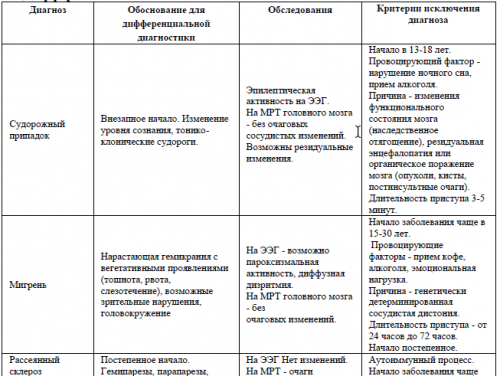 Дифференциальный диагноз и обоснование дополнительных исследований: консультация офтальмолога для исключения признаков отека на глазном дне, проведение периметрии для определения полей зрения;