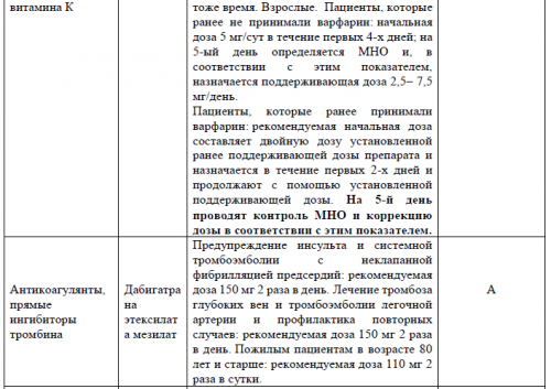 Перечень основных лекарственных средств:• Пациентам с неклапанной ФП и инсультом или ТИА рекомендуется прием пероральных антикоагулянт (апиксабан, дабигатран, ривароксабан, эдоксабан или варфарин) для снижения риска повторного инсульта. (класс I, УД-А) .