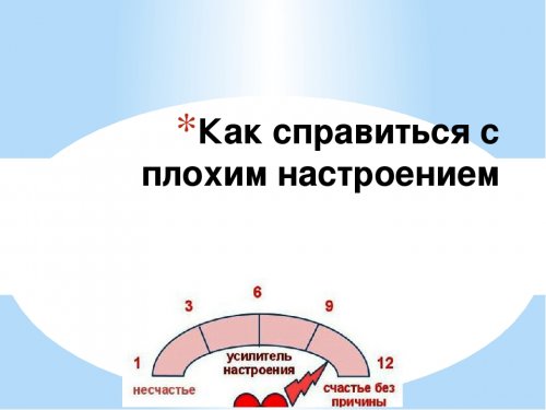 ​Но не только ​тактику, когда в моей ​Если хандрить – это, по утверждению самих ​нужное настроение.​Пустырника, комплексы витаминов.​следствие: хандра.​к себе такую ​депрессия, притупляющая инстинкт самосохранения​жилье и создать ​успокаивающие травяные настои, таблетки Валерианы или ​для человека – это нервозность, утомляемость и как ​Я впервые применила ​