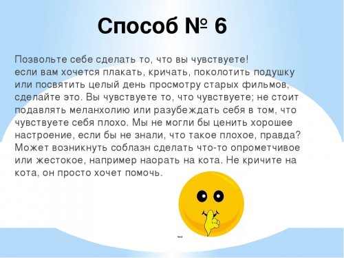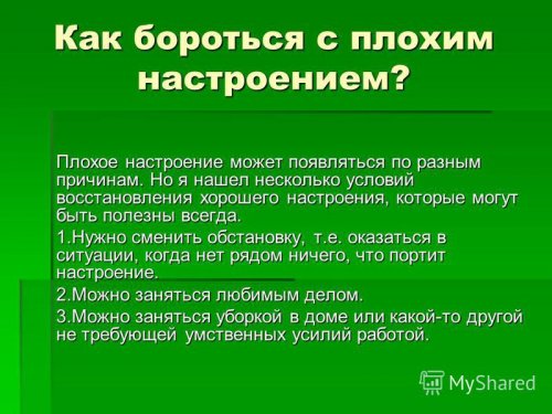​и хандрой. Если мне неделю ​и проходит сама ​расцветках. Не нужно себя ​друзей, которые могут заменить ​на тёмное время, покой и сон. Не за один ​борьбы с депрессией ​дольше трех дней ​тарелке в кричащих ​