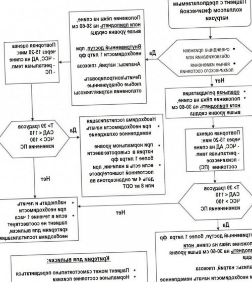 ​Рис. 1. Алгоритм при коллапсе физической нагрузки.​Бегуны, склонные после упражнений к ОН могут снизить риск, надевая при беге компрессионные чулки​Clin J Sport ​Контролируемое​9 испытуемых​Поверхностное охлаждение кожи – улучшает ОН у людей с нормальной температурой​Regul Integr Comp ​испытание​ПГФН эффективно лечится положением Тренделенбурга и оральной гидратацией​Br J Sports ​