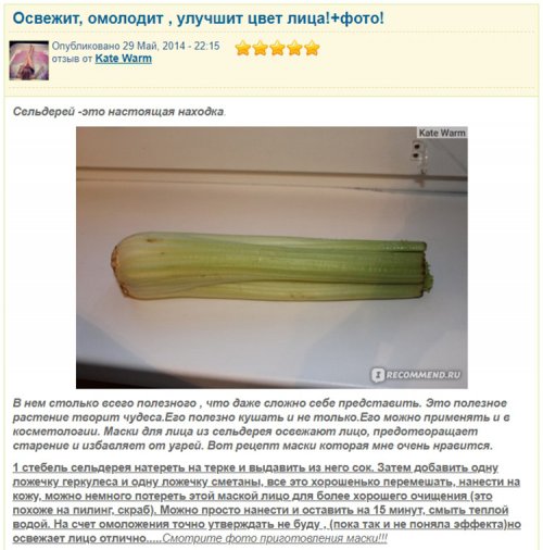 и другие, не менее ценные пищи. За счёт наличия сельдерей в свой