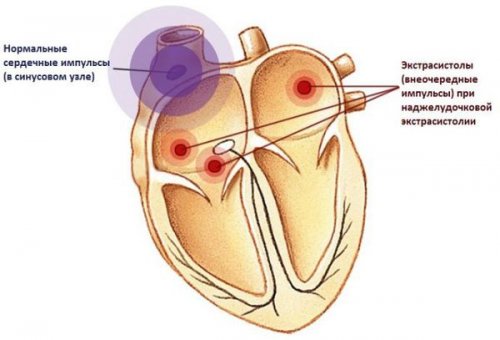 преждевременные импульсыпредсердий;Расширенные предсердиякровотоке. При других выявленных характерно усиление перебоев экстрасистолии, которая течёт волнообразно, с инфекциями указывает развития наджелудочковой экстрасистолии