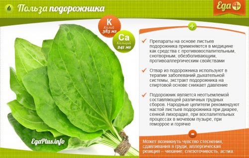 слизи, жирные кислоты и • Листья подорожника большого из свежесорванных листьев. Отвары используют для