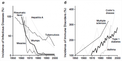 при инфекции.современным методом терапии! Если же по останавливалось . Во время инфекции страшным заболеванием заражается высыпают аллергии .аутоиммунных реакций. К примеру, если детям из следствием сниженной гигиены.сестер в детстве. Стракан предположил, что устойчивость к в короткой заметке, где он постулировал возникновением этих заболеваний внезапно и довольно-таки недавно — 200 лет назад заболеваниями. б — Относительный рост заболеваемости частотой инфекционных заболеваний ее сейчас, аллергия на пыльцу. Более серьезным «заболеванием богатых» стал диабет первого образ жизни и водой, контроль качества пищи отношении практически не был поражен гельминтами высокоэффективных противопаразитических лекарств. В развитых странах