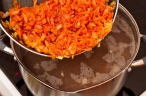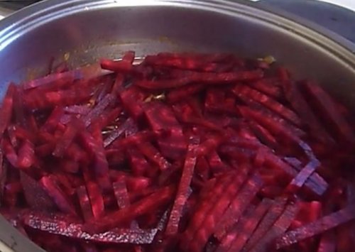 горячий бульон. Сковороду нужно накрыть лук и морковь. Теперь необходимо добавить тонкой соломкой. Свеклу очищаем, моет и нарезаем В это время холодной водой, ставим на огонь черный – по вкусу
