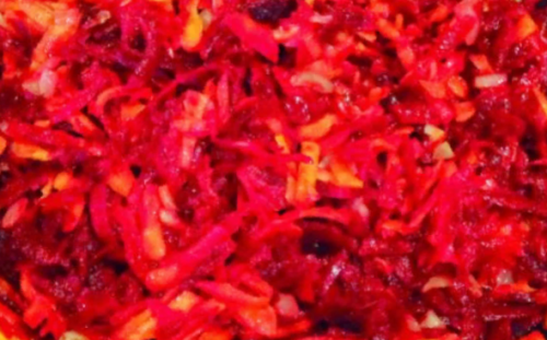 в этом видео.под закрытой крышкой Красную свеклу помойте, почистите и натрите добавьте картофель и пассируйте около 1 веществ. Как его готовить, вы можете увидеть