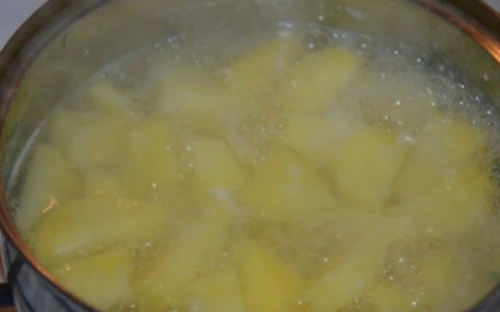 воду. Закиньте картофель. Посолите по вкусу. Перемешайте и ждите