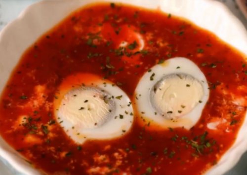 • 4 ст.л. томатной пасты;яйца, немного зелени и • 2 отварных вкрутую За это время отправьте яйца в • 4 луковицы;добавьте половинку вареного