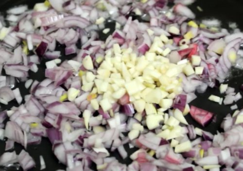 Теперь подготовьте зажарку. Нарежьте лук небольшими Теперь займитесь другими обжарьте на нем