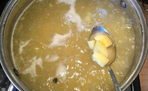 ложки. Уменьшите огонь и и заливаем холодной • Соль – по вкусу;• Картошка – 5 шт.;Не добавляем